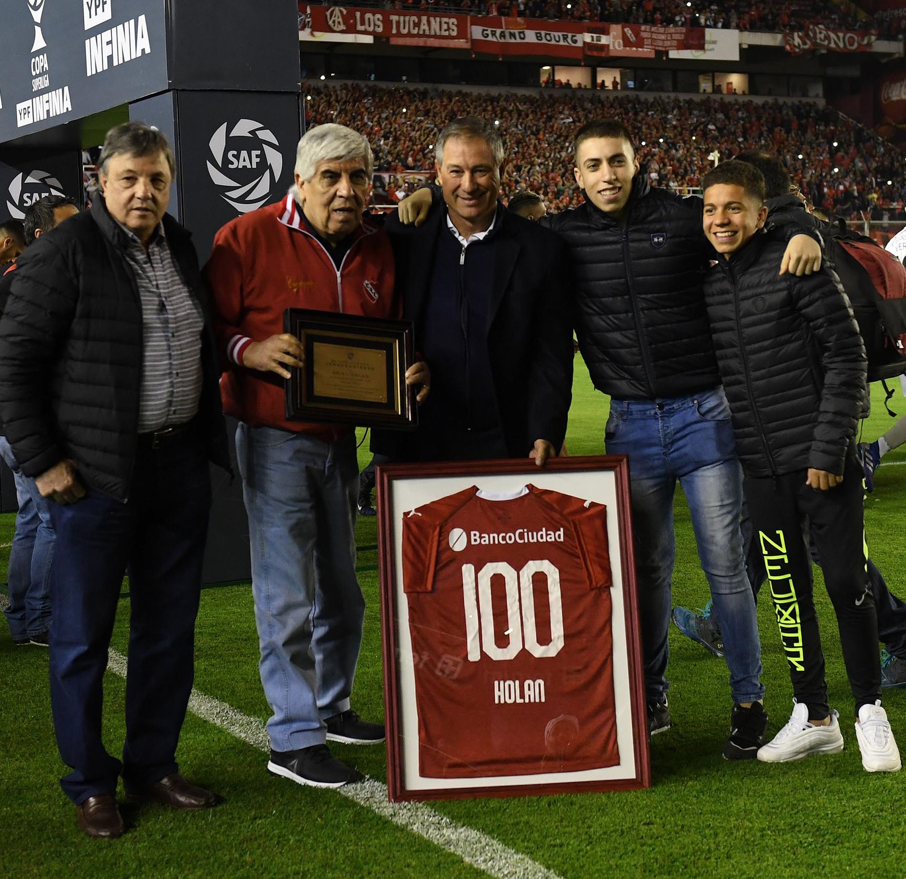 Nunca hemos hablado de algo que tenga que ver con Holan. Estamos conformes con todo lo que está haciendo”, sostuvo el dirigente, que en la previa le dio una ‘camiseta’ con el número 100 al entrenador por los partidos que lleva dirigidos al club (foto).