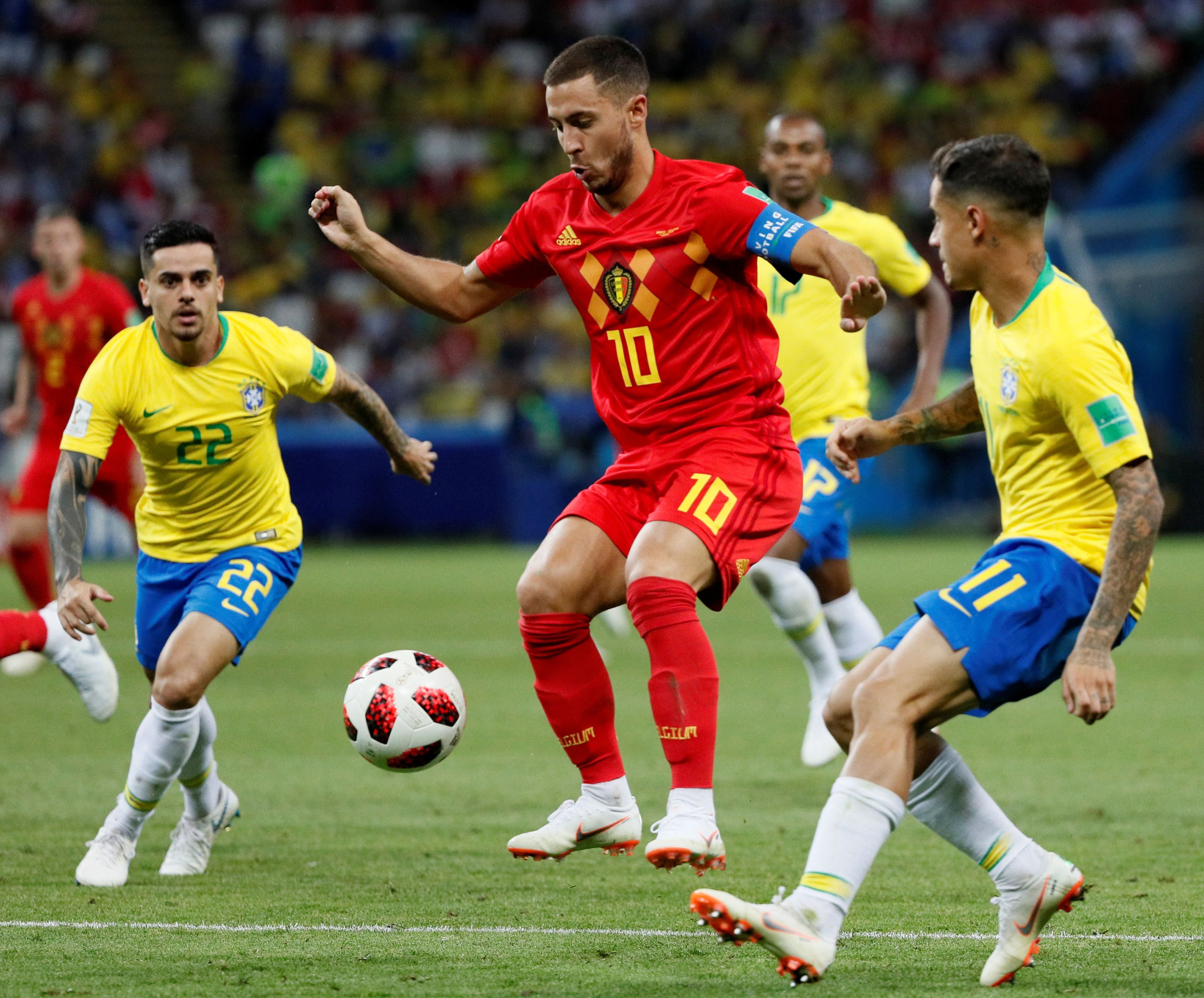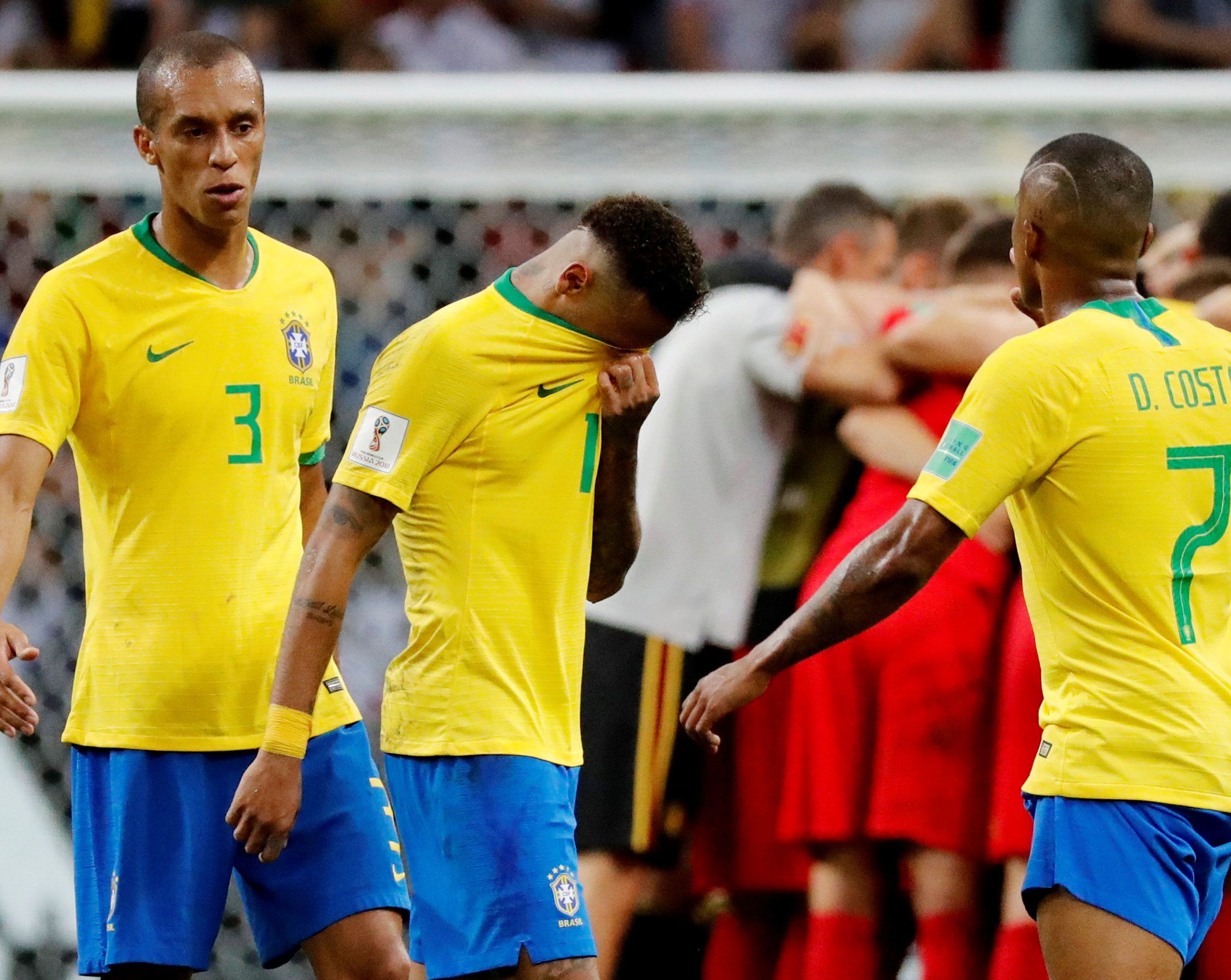 A pesar del dominio y presión durante todo el partido, los pentacampeones mundiales no alcanzaron el empate, en parte por las atinadas intervenciones del portero Thibaut Courtois, quien salvó su meta en por lo menos cuatro ocasiones. "Nos vamos del Mundial con tristeza (…) Perdimos ante un gran equipo que aprovechó sus opciones para marcar dos goles. Este es un grupo joven que puede ganar la próxima Copa del Mundo", dijo el defensor brasileño Miranda tras el partido. "Intentamos todo, peleamos hasta el final y nos vamos con la cabeza en alto porque dejamos todo en la cancha", agregó.