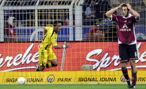 Borussia Dortmund, con un gol del argentino Lucas Barrios goleó ayer al Nüremberg por 4 a 0 en encuentro de la 15ta. fecha de la liga alemana. En el Nüremberg, el defensor Javier Pinola jugó los 90 minutos. Con el triunfo, Borussia Dortmund (24 puntos), se coloca a siete del líder Bayer Leverkusen, que igualó sin tantos con el Hannover.