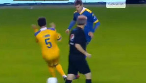 Buenos Aires, 9 de julio.- Durante el encuentro despedida a Sebastián Battaglia, Palermo recibió la pelota en la mitad de la cancha, y para sacarse de encima la marca de Diego Cagna, le tiró un caño que despertó la ovación de toda La Bombonera.