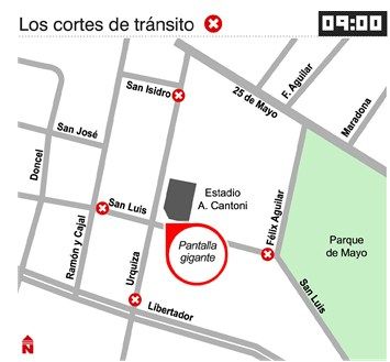 El choque mundialista comenzará a las 11, pero seguramente la intersección de Urquiza y San Luis se verá colmada de hinchas desde horas antes, especialmente si de contar con una buena ubicación se refiere. Los colores blanco y celeste inundarán un lugar tradicional del deporte sanjuanino. Ojalá sea para festejar tras el final del partido.