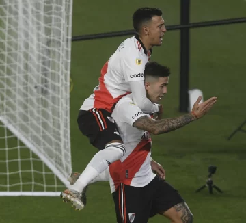 River se dio anoche un baño de confianza de cara a su compromiso del miércoles por la Copa Libertadores, al vencer de local a Vélez Sarsfield por 2 a 0 en encuentro de la sexta fecha. Los goles del partido, jugado en el estadio Monumental, fueron anotados en el segundo tiempo por Enzo Fernández, de penal, a los 4m; y por Braian Romero, a los 46m. Con la victoria, el "Millonario" llegó a los diez puntos y se mezcló con los terceros. Vélez, en cambio, sigue en los últimos puestos con apenas tres unidades.