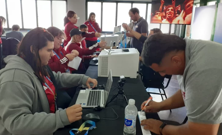 En uno de los salones donde funcionaba el camping del Colegio Médico está el Área de Acreditaciones. Son diez voluntarios los que trabajan arduamente. Se encargan de atender a la prensa que llegó desde todo el mundo.