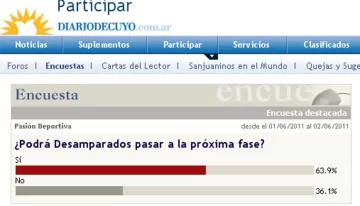 San Juan, 1 de junio.- Un total de 414 lectores respondieron a la escuesta propuesta por DIARIO DE CUYO ONLINE, en relación al partido que Desamparados debe afrontar esta noche para pasar a semifinales.