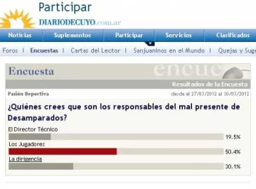 En una encuesta realizada por DIARIO DE CUYO ONLINE, más del 50% de los lectores que opinaron piensan que los jugadores de Desamparados son los responsables de la mala racha del club.