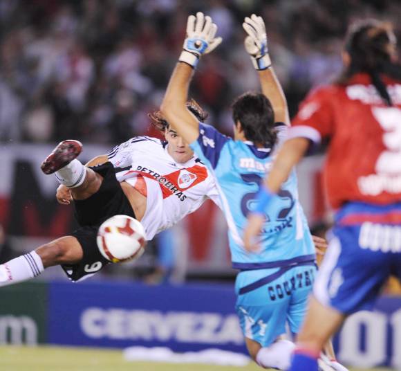 Con los volantes abiertos más activos, sobre todo Rubens Sambueza, el conjunto millonario apretó y así tuvo el gol Falcao, quien de cabeza estuvo cerca.
