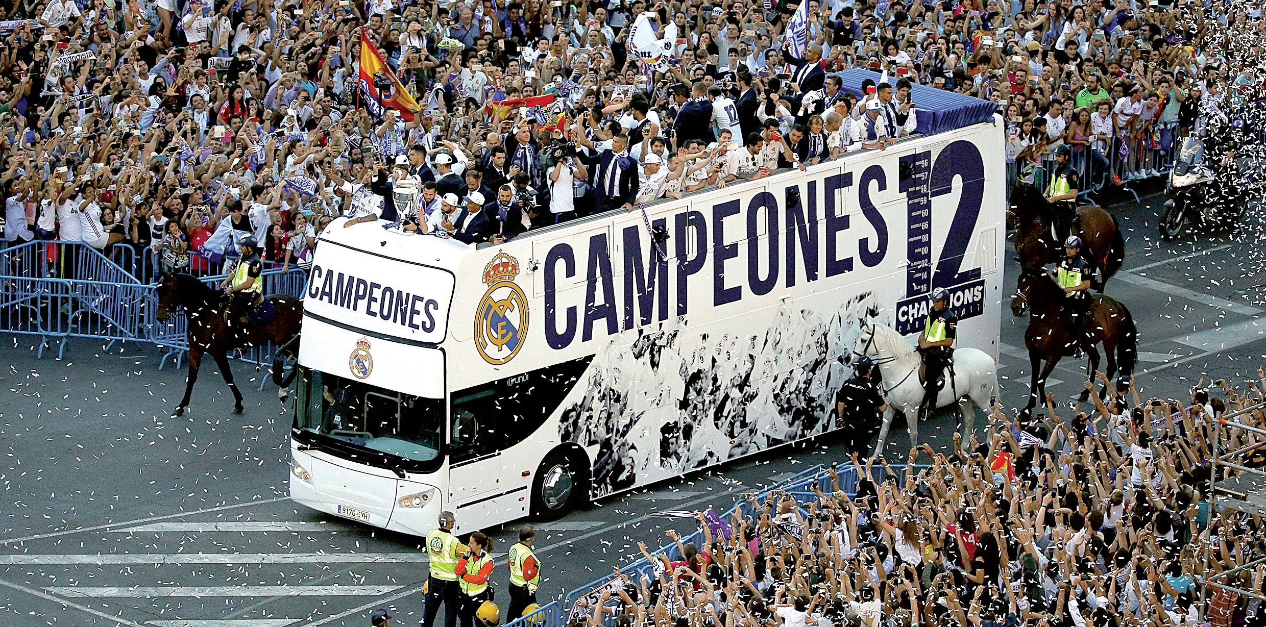 El plantel del Real Madrid que se consagró el sábado por 12da vez como campeón de la Champions League (venció en la final 4-1 a Juventus), tuvo su paseo triunfal por distintos lugares en la capital española, donde recibió el cariño de los fanáticos del Merengue.