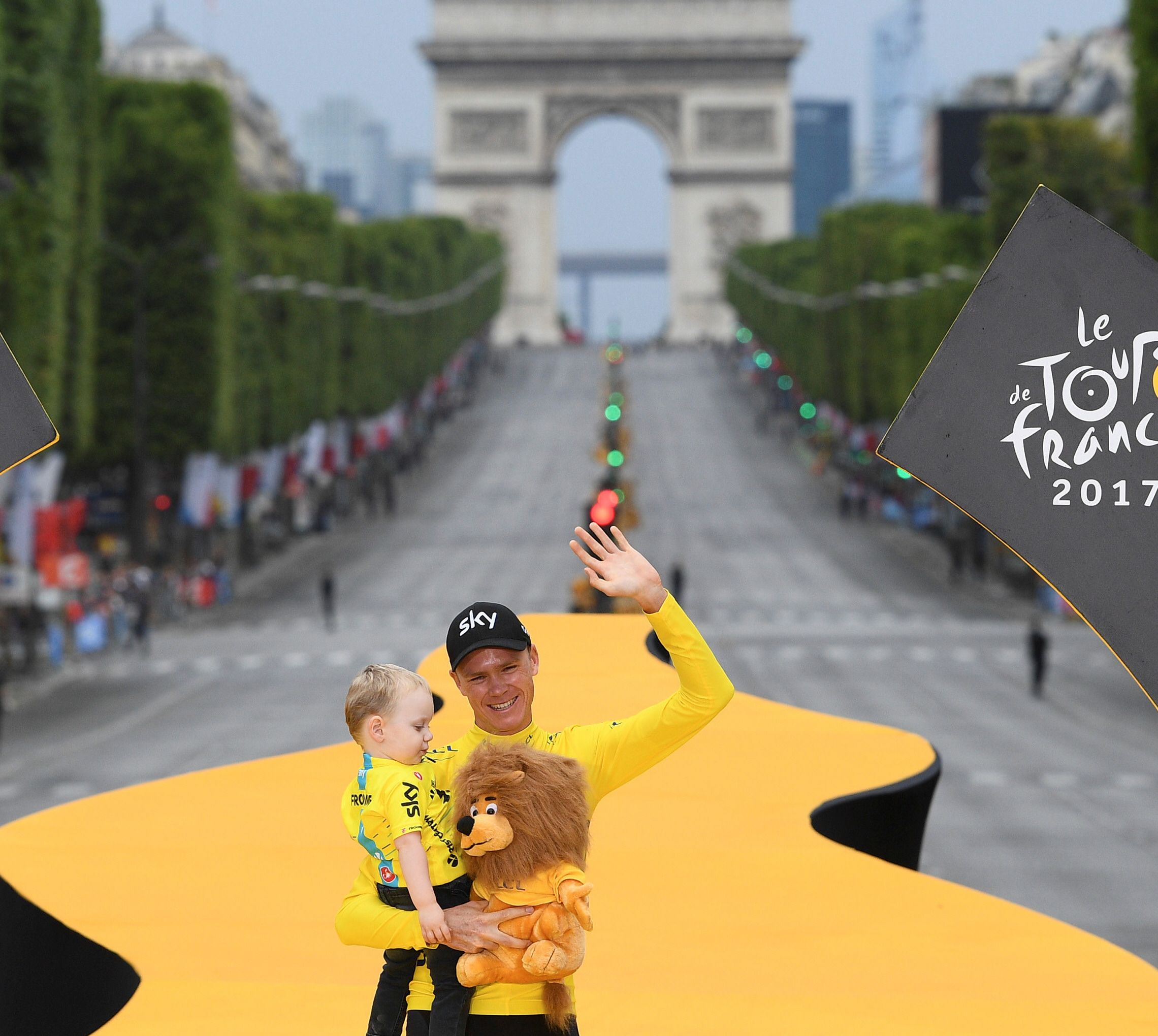 El colombiano Rigoberto Urán (Cannondale) y el francés Romain Bardet (Ag2r), segundo y tercero, respectivamente. fueron quienes acompañaron al inglés en el podio montado en los Campos Elyseos.