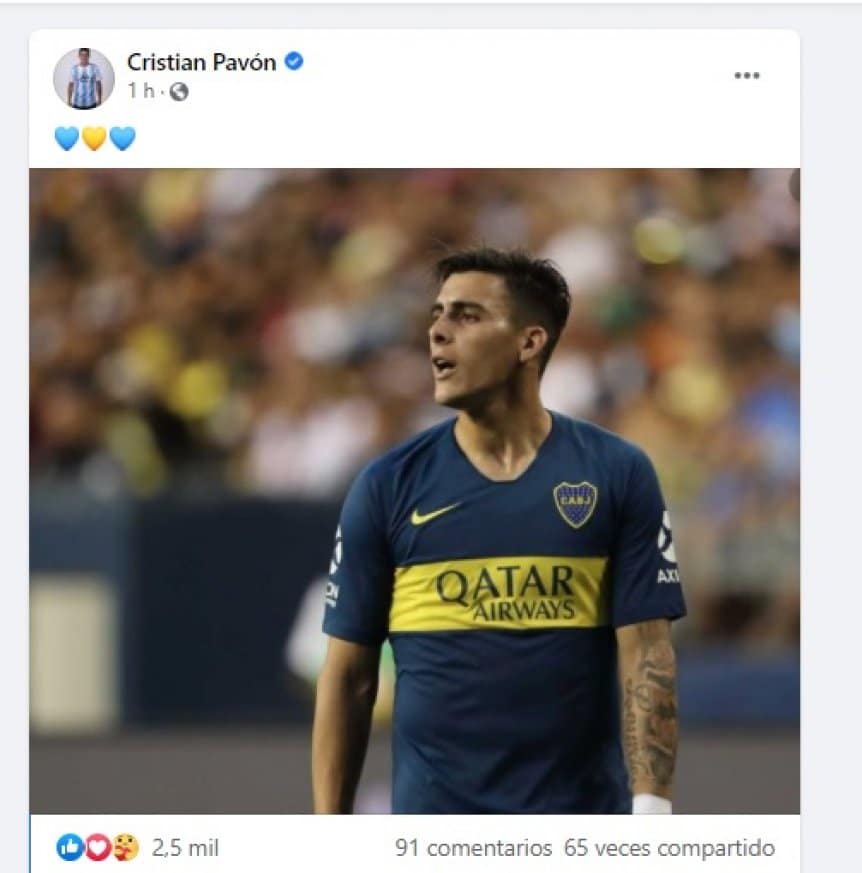 En este contexto, el atacante hizo una curiosa publicación a través de su cuenta de Facebook: una foto suya con la camiseta del Xeneize, y corazones azules y amarillos.