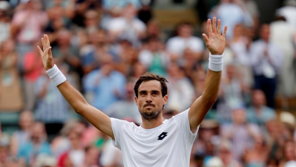 Guido Pella protagonizó una gran victoria sobre el croata Marin Cilic (3º preclasificado), en la continuación del partido que el miércoles habían suspendido por lluvia. Con una importante ventaja para el croata, Pella tuvo una reacción memorable para llevarse la victoria por 3-6, 1-6, 6-4, 7-6 (3) y 7-5, y convertirse en el primer argentino en alcanzar la tercera ronda en Wimbledon.
