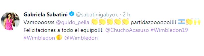 Mientras que Gabriela Sabatini lo felicitó y también extendió su saludo al cuerpo técnico que lo acompaña.