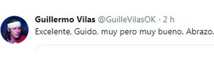 La victoria de Pella generó que grandes extenistas como Guillermo Vilas y Gabriela Sabatini, entre otros, le brindaran sus saludos. El mejor argentino de la historia le escribió "excelente Guido, muy pero muy bueno. Abrazo". Willy también fue otro tenista nacional que llegó a cuartos en Wimbledon.