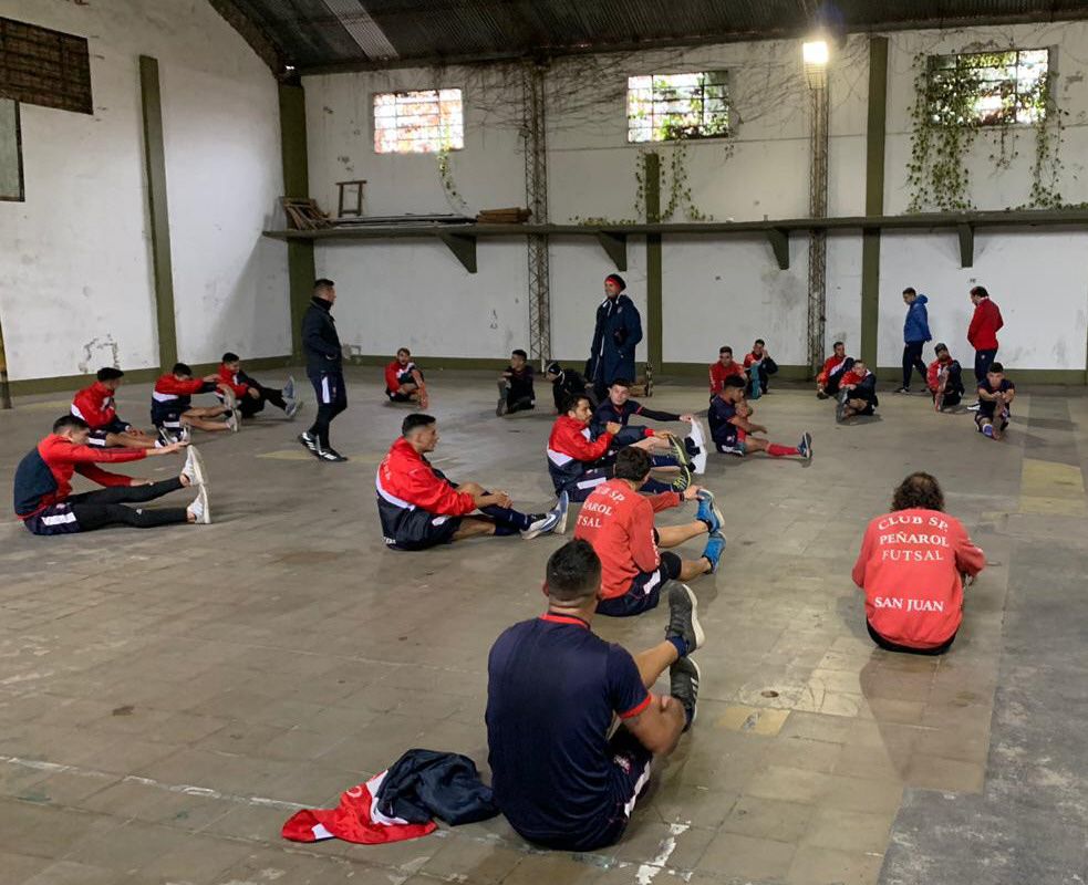 Bajo techo. El plantel no pudo entrenar en Mercedes por la lluvia y se movieron en el gimnasio de Comunicaciones.
