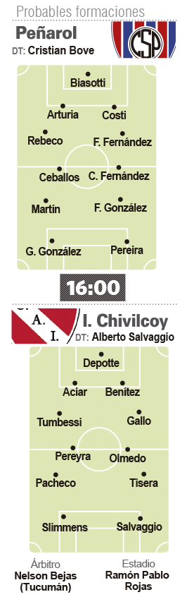 Del lado de Peñarol no existe misterio alguno ya que con plantel completo, el técnico Cristian Bove repetirá formación con los mismos once que comenzaron la revancha de hace dos semanas ante San Martín de Mendoza. La potencia goleadora del Gatito Pereira, la movilidad del Bibi González, el talento de Facu González tienen sustento en el bloque defensivo que le da el resto. A eso apostará otra vez Peñarol. A esa entrega, a la personalidad de un plantel marcado por el oficio y la experiencia para buscar su diferencia y luego afrontar la revancha. El año pasado le tocó igual contra Camioneros y el empate en San Juan en el partido de ida, lo terminó condicionando. Ahora, no quieren repetir esa página y es lección aprendida en Chimbas.