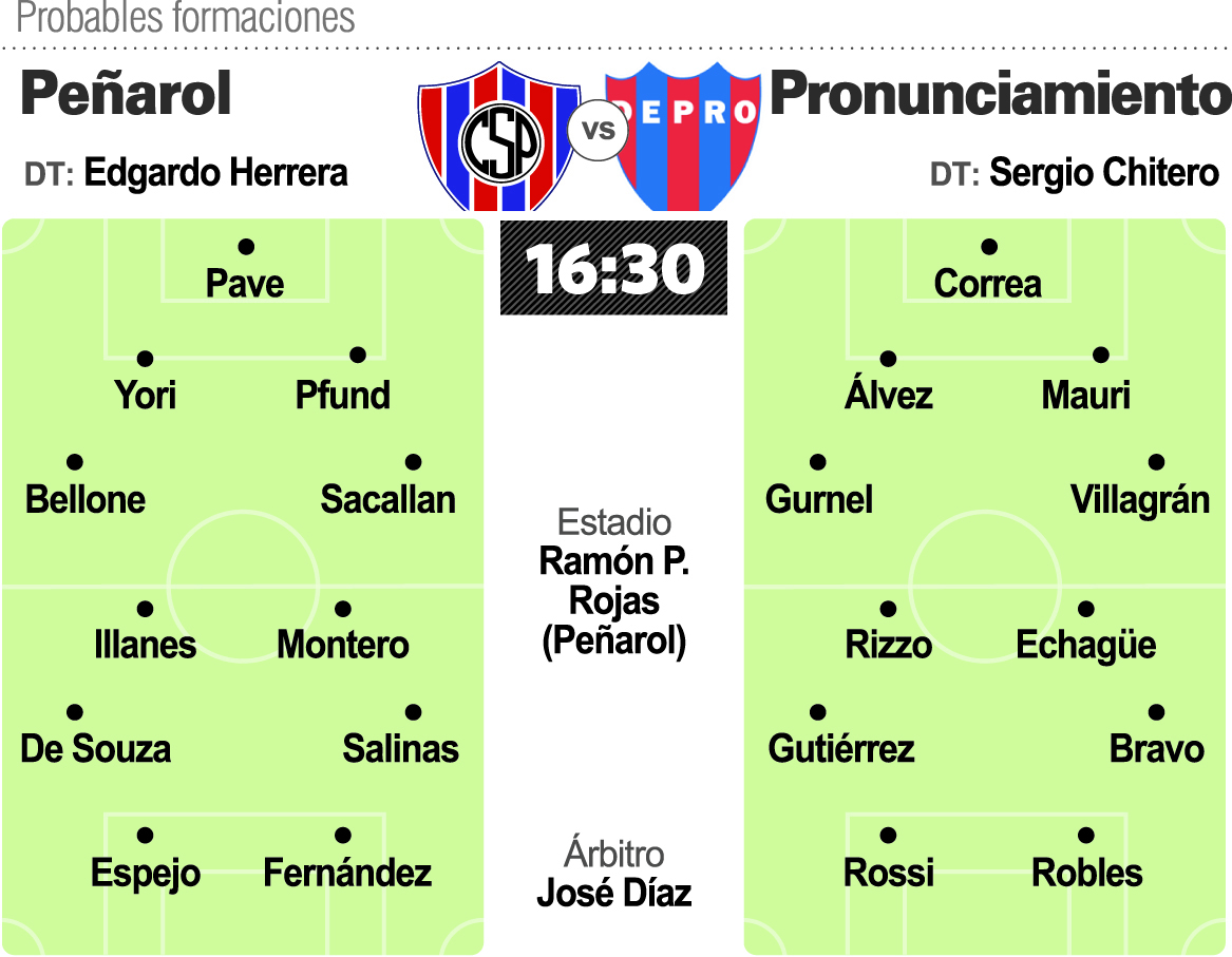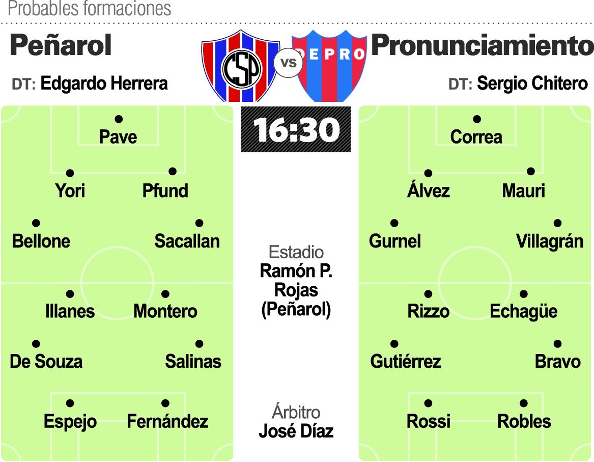 Pasaron las 30 fechas de la exigente fase clasificatoria y es momento de definiciones en el Federal A. En un solo partido, a todo o nada y sabiendo que las ilusiones de ascenso se juegan en estos primeros 90 minutos de la serie, Peñarol será local este domingo a las 16.30 de Defensores de Pronunciamiento en Chimbas, sabiendo que lo único que le sirve es ganar. Con todo el optimismo por haberse metido entre los equipos que irán por el segundo ascenso de la categoría, el Bohemio tendrá plantel completo para jugar contra los entrerrianos apostando a esa localía que hace diferencias en un certamen complejo, duro. La semana previa al encuentro contra Defensores, que terminó en la quinta colocación de la Zona 2, fue de lo mejor para Peñarol que recuperó dos valores claves en el ataque como Leandro Espejo -su gran figura- y Nelson Da Silva, que se perdió todo el tramo final por una fractura. Además, en lo defensivo tendrá a Agustín Bellone ya de vuelta tras la suspensión con lo que el panorama no pudo ser mejor para el entrenador Edgardo Herrera. La obligación es de Peñarol por su localía, pero la visita tiene sus riesgos. Y por ahí pasará el partido: por el protagonismo. Con paciencia, con mucho juego y con la presión permanente, el Bohemio irá en busca de un paso más.