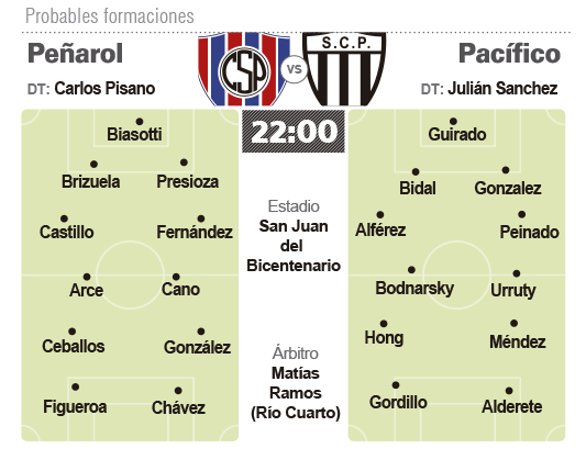 En las novedades futbolísticas del Peñarol que ahora conduce Carlos Pisano, el regreso del experimentado arquero Carlos Biasotti es la grata noticia. Carlos fue expulsado ante Colón y ya cumplió en el partido de ida, por lo que regresará para brindar todo su oficio y además, en caso de ser necesario, aportar su ya probada capacidad para los penales. En el resto de la formación, todo igual con la dupla Figueroa-Chávez en el ataque y la incansable tarea de Santiago Ceballos y David Cano en el mediocampo.