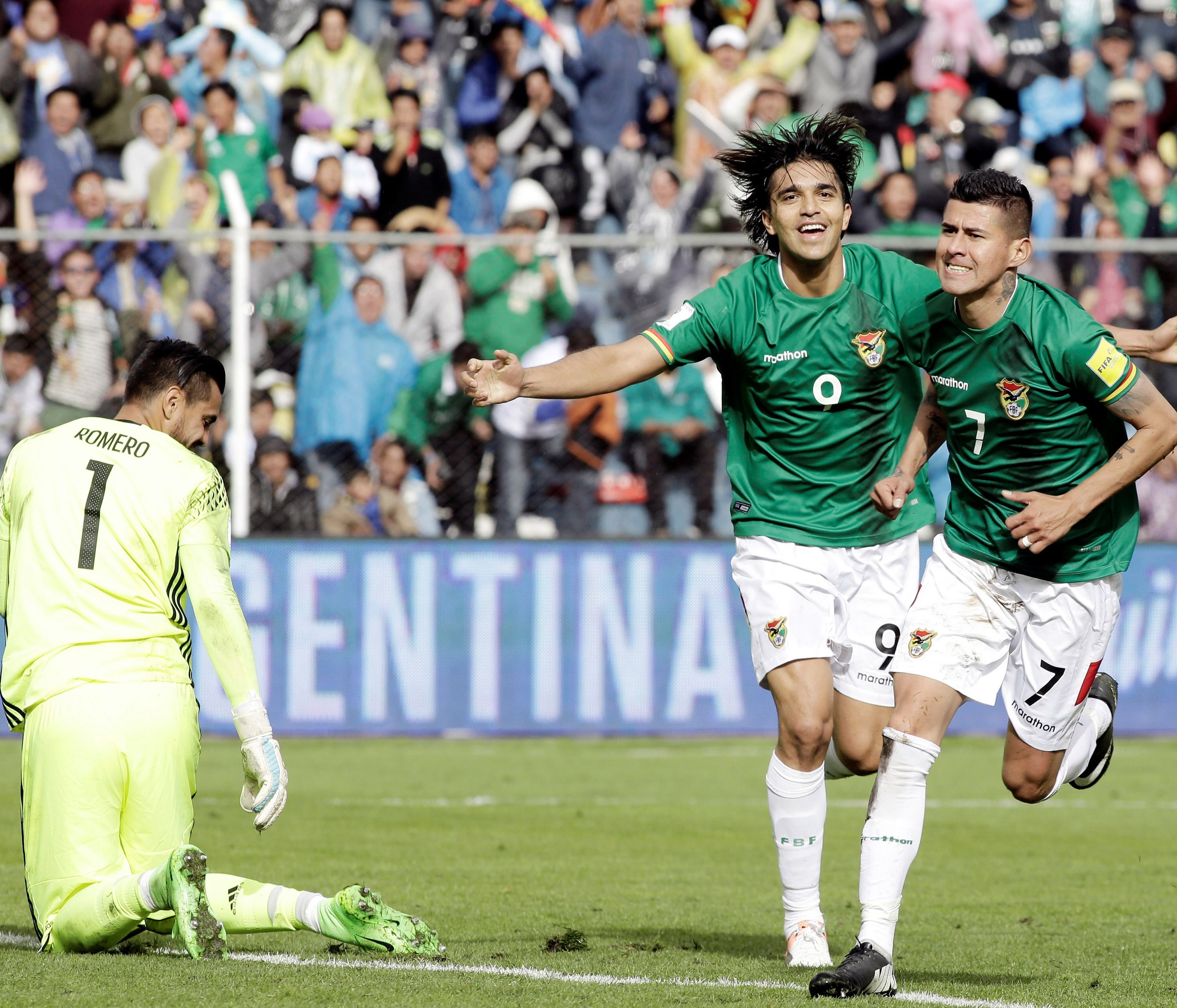 De hecho, en el mejor momento de Argentina, llegó el gol de Bolivia: centro desde la derecha de Pablo Escobar y cabezazo de Arce (le ganó en el salto a Facundo Roncaglia) para vencer a Sergio Romero, quien tuvo responsabilidad ya que se resbaló inexplicablemente y perdió ese segundo clave para evitar la caída de su arco.