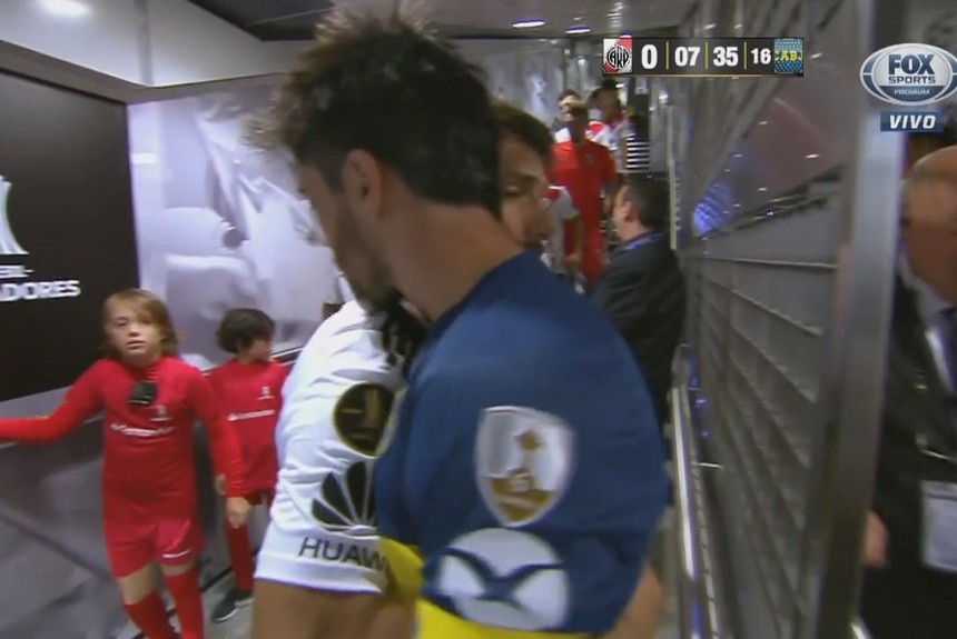 Después del Himno, Boca pasó por enfrente de donde estaba formado River y hubo saludos y hasta algunas sonrisas. Bien.