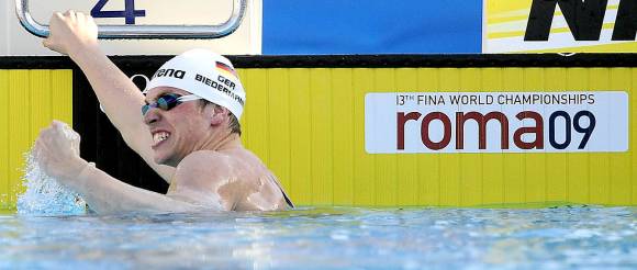 Y, nunca mejor que en Roma, Biedermann vino, nadó y venció con un tiempo de 1 minuto y 42 segundos, frente a 1 minuto 43 segundos y 22 centésimas del estadounidense, que suma así la plata al oro logrado junto a sus compañeros en los relevos 4 por 100 metros libre del pasado domingo.