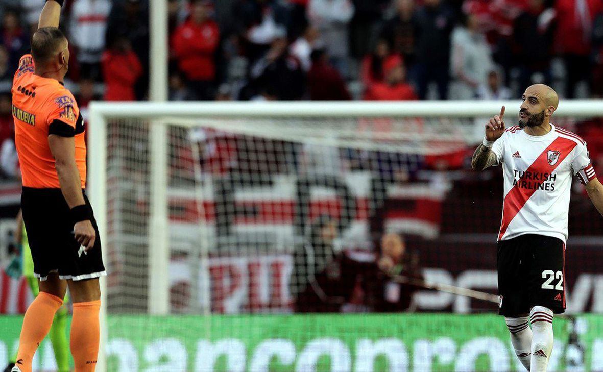 Fue entonces cuando el árbitro Néstor Pitana "se volvió loco" y amonestá también al colombiano Rafael Santos Borré y -como Javier Pinola le siguió protestando- también al capitán de River.
