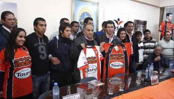 Las inscripciones de la Municipalidad de Pocito y de Refinerías Tauro en el pecho, de Vivero Amat y empresas viales Cor-al, en las mangas y de Calzados María y Empresas Barcelo, en la espalda, acompañados con el escudo en el pecho y un número grande y visible en el dorso, adornan la nueva camiseta que lucirán los jugadores dirigidos técnicamente por Héctor Facundo "Nito" Allende.