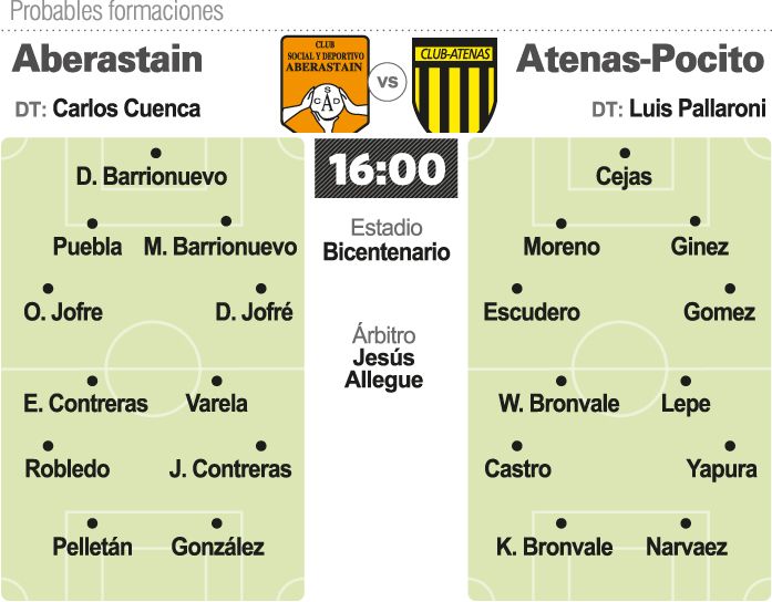 Será la fiesta pocitana en el Bicentenario. El Norte, para Aberastain y el Sur para Atenas. Con prometedor espectáculo y las ambiciones a flor de piel de dos equipos que son puro sentimiento en su gente vestidos de fútbol.