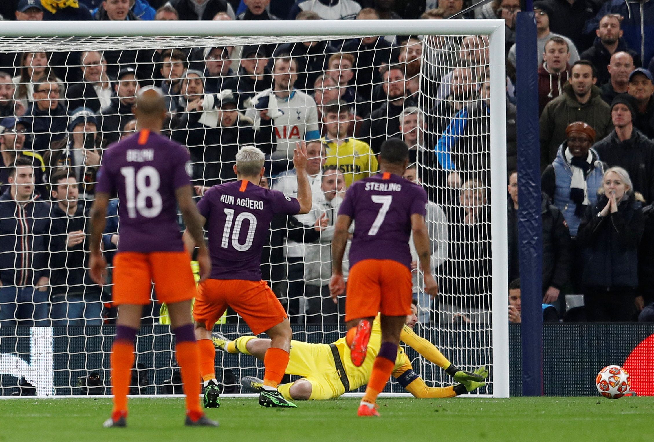 El penal a favor de Manchester mereció la observación del VAR con la mano en el área de Danny Rose. El remate débil y anunciado de Agüero, quien regresó al equipo recuperado de una lesión muscular, se produjo a los 13 minutos del primer tiempo y desviado por el arquero francés Hugo Lloris.
