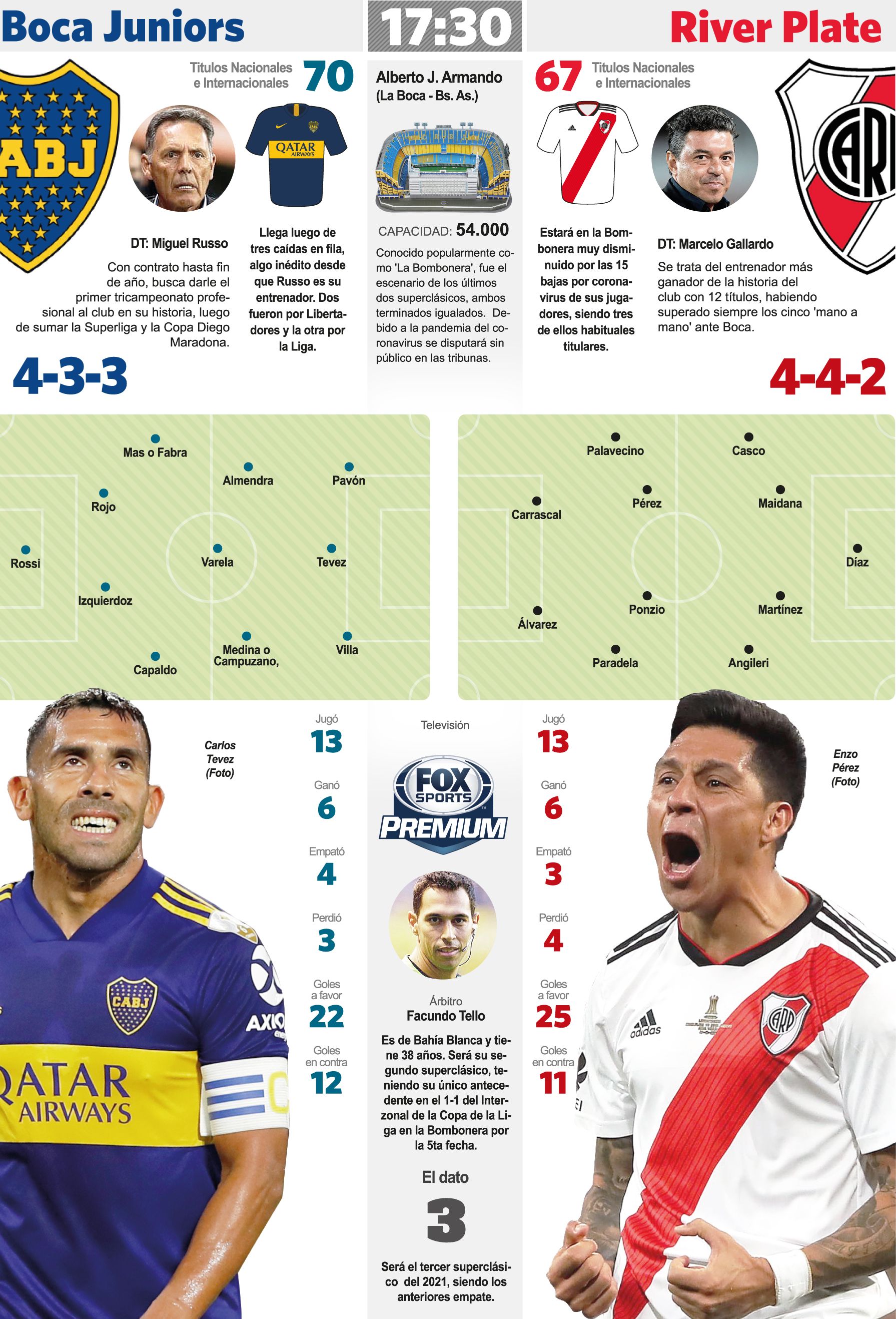 River transita un vaivén claro en su rendimiento. Alterna momentos de ilusión con otros de preocupación y por eso su clasificación a Octavos de final en la Libertadores no está sellada y en la Copa de la Liga debió esperar a la última fecha para meterse en esta instancia. Claramente perdió más de lo que ganó en el mercado de pases anterior, con la deuda aún muy pendiente de encontrarle un remplazante a Ignacio Fernández. Pero este plantel al mando de Gallardo supo "acomodarse" siempre de la mejor forma cuando enfrentó a Boca. Lo hizo en todos los cruces a todo o nada, y hoy tendrá una misión acaso como nunca antes de compleja.