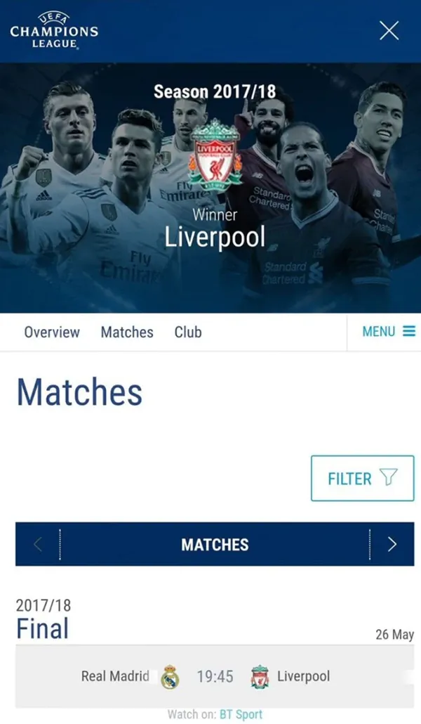 A 22 días para que se juegue la final de la Champions League entre el Real Madrid y el Liverpool, la página web oficial de la UEFA anunció al campeón de la competencia tras un insólito error.