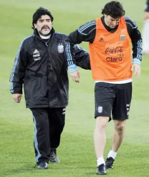 El entrenamiento terminó cuando tras un pase largo de Mascherano, Angel Di María le convirtió un gol a Mariano Andújar. Inmediatamente, Maradona se juntó con el médico Donato Villani, por la renguera de Milito, pero no hubo gestos de preocupación en el facultativo.