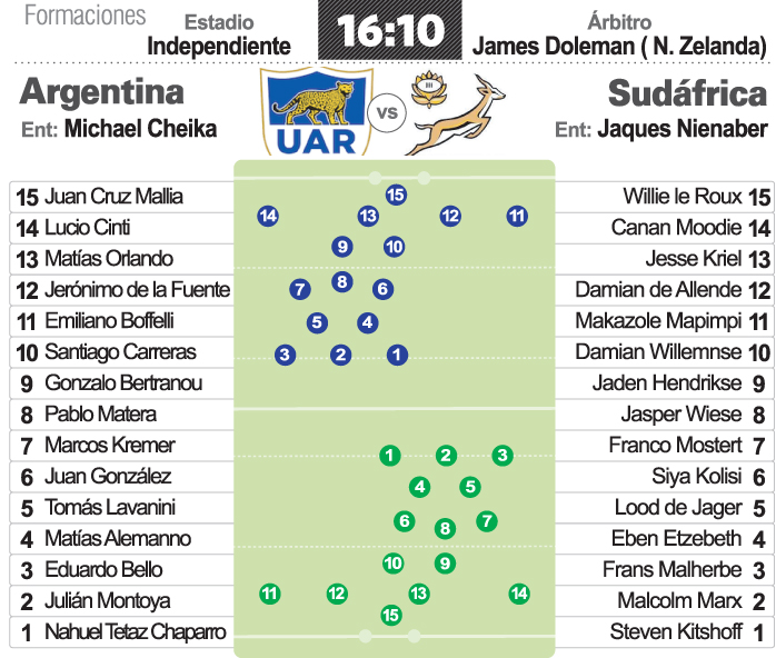 Así, Los Pumas tendrán hoy frente a su público la posibilidad de recuperar su imagen y revalidar su nivel de juego, tras la dura caída ante Nueva Zelanda. Y recuperar su esquema de juego que le alcanzó para lograr dos triunfos históricos, frente a Australia y ante los All Blacks.