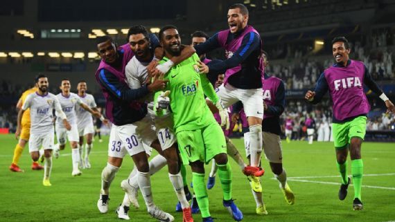 El equipo campeón de los Emiratos Árabes Unidos (EAU), el Al Ain, se hizo fuerte de local y se impuso en los penales (4-3) ante el Team Wellington tras haber igualado 3-3 en los 120 minutos. El club argentino River Plate jugará ahora ante el ganador de la llave entre local y el Esperance, de Túnez.