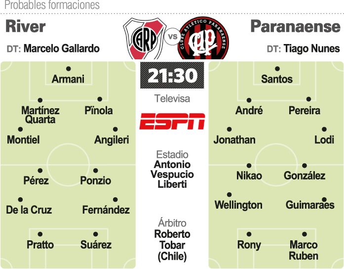 River deberá ganar para, al menos, asegurarse estirar la definición. Si lo hace por un tanto habrá alargue y de continuar la paridad todo se definirá en los penales. No vale doble el tanto de visitante y a Paranaense le alcanza con empatar y, por supuesto, un triunfo lo consagra.