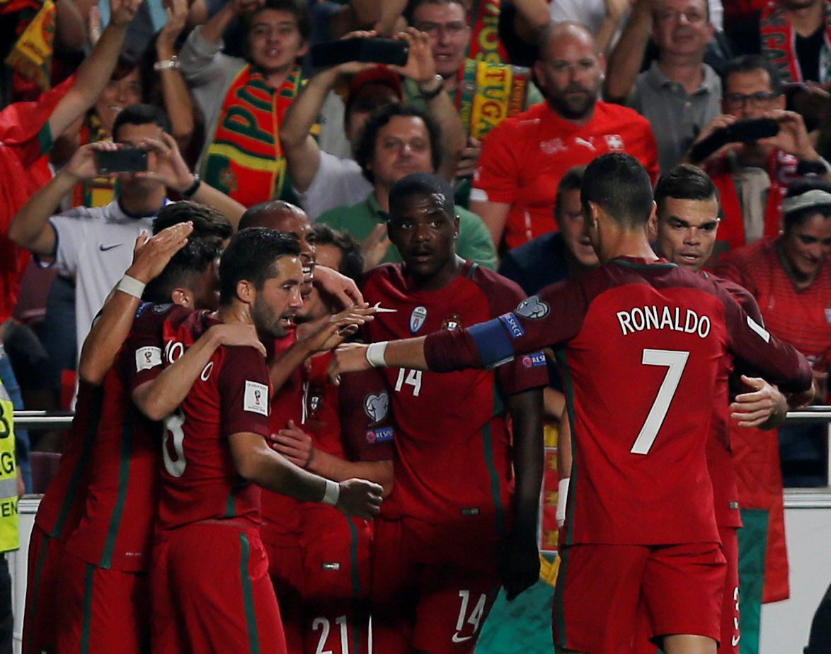 Loco festejo. Los jugadores portugueses, con Cristiano Ronaldo incluído, le dan rienda suelta a su alegría luego de lograr la clasificación al Mundial de Rusia 2018. La gente se prende con ellos. Francia también lo logró, no así Holanda.