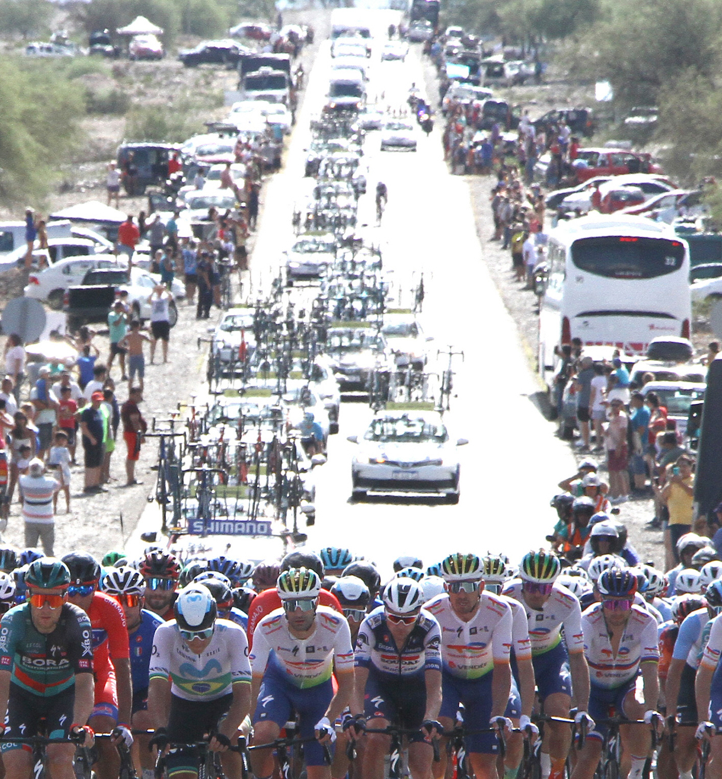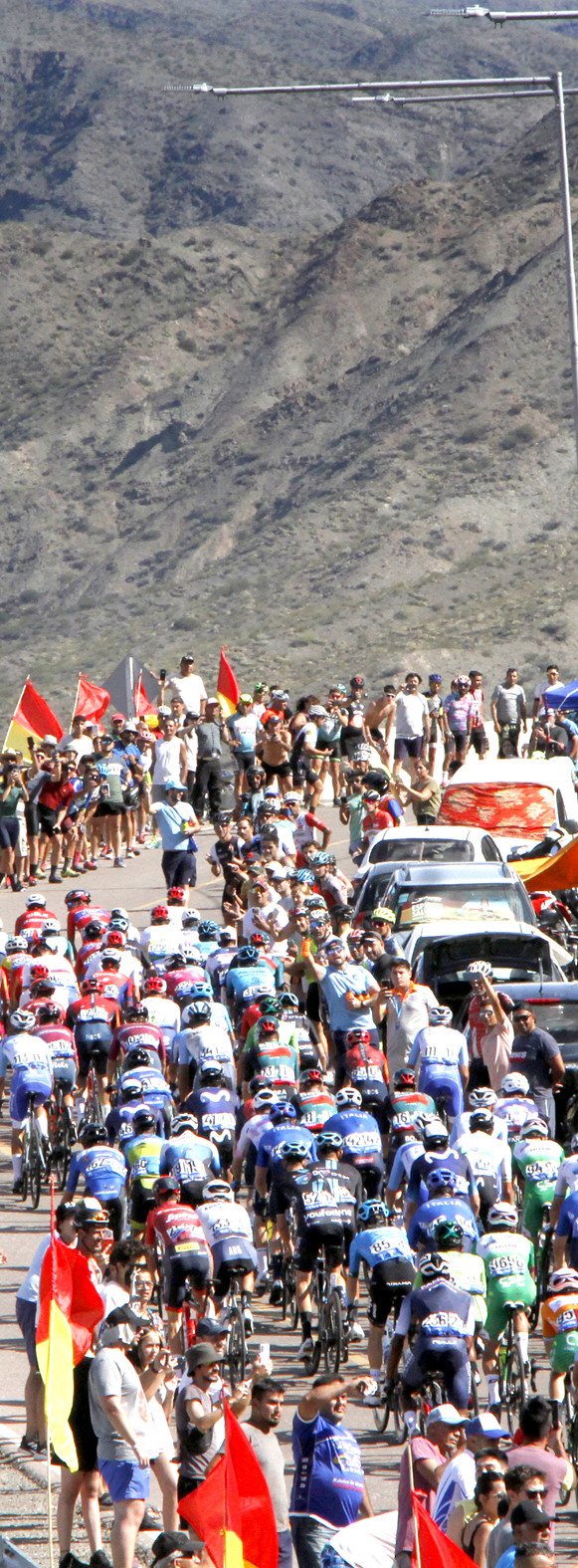 A subir. Los ciclistas encaran una de las tantas subidas a los Caracoles, en una postal magnífica y para el recuerdo de todos.