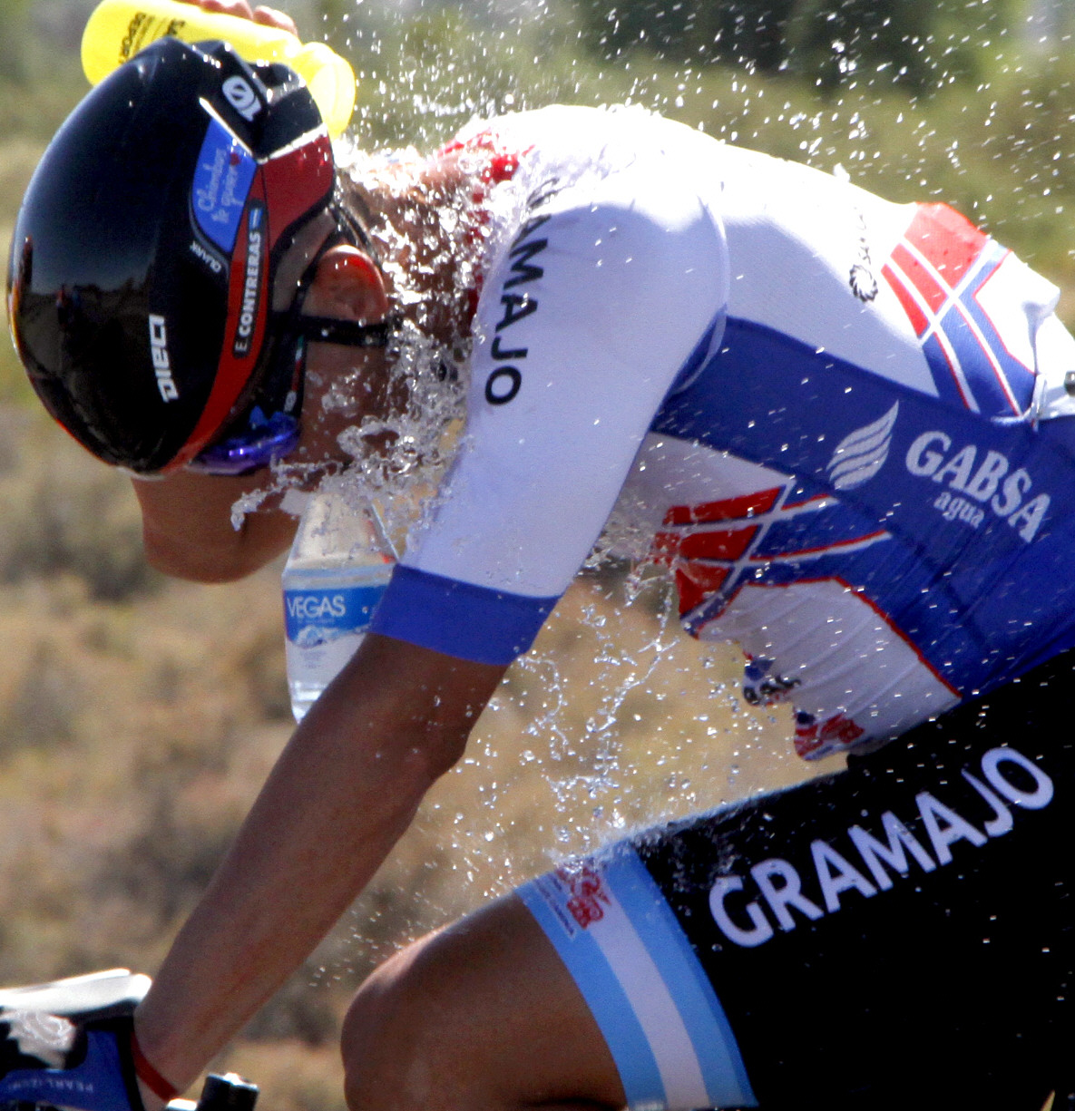 Bendición. El pedalero se tira agua, en una etapa donde el termómetro pasó los 40º.