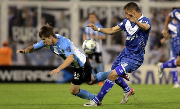 Vélez Sarsfield se afirmó anoche como escolta del Torneo Inicial porque le ganó al Racing Club 1-0 un partido escaso en emociones que se realizó en el Estadio José Amalfitani por la duodécima fecha. El gol que dejó a Vélez a tres puntos del líder Newell’s Old Boys lo marcó Lucas Pratto, a los 15 minutos del primer tiempo, al recoger un rebote que se vio obligado a dar Sebastián Saja. En cambio, Racing retrocedió al tercer puesto, y se ubica a cinco unidades de la cúspide. Racing llegó a Liniers con un planteo especulativo que le duró un cuarto de hora, debido a la fragilidad del sector derecho de su defensa y a la eficacia de los ataques de Vélez por ese sector. Vélez no tardó en abrir un surco y de generar interminables complicaciones para el visitante. El equipo albiceleste pretendía plantar batalla en un espacio reducido y en su propio campo, con la intención de lastimar al adversario de contraataque, pero Racing se vio obligado pronto a cambiar de planes. La apertura del marcador, se produjo por una réplica de Vélez encabezada por Pratto, quien se frenó y le cedió la pelota a Iván Bella para que pateara desde fuera del área con mucho veneno. Saja se vio forzado a dar un rebote y el artillero sin perder tiempo fue a capitalizarlo para poner el 1-0. A los 29 el local pudo haber ampliado la diferencia pero Matías Cahais derribó a Facundo Ferreyra agarrándolo de la camiseta dentro del área, sin que el árbitro Sergio Pezzotta advirtiera la falta. Una vez que Racing se vio obligado a asumir el protagonismo fueron insuficientes los esfuerzos individuales de Villar, Centurión y Vietto. En el segundo período Vélez se recostó decididamente sobre la diferencia y ni fue intenso de contraataque, tal fue el grado de impotencia de Racing, incapaz de elevar la temperatura del encuentro hasta que se concretó el ingreso de Mauro Camoranesi por Claudio Corvalán, a los 16 minutos. A los 21, Pezzotta cometió otro error grave al no advertir un claro penal de Bruno Zuculini contra Ferreyra, a quien derribó desde atrás con una infracción deslizante. Desde entonces Racing buscó el empate sólo con voluntad, pero esta vez esa exclusiva virtud fue insuficiente y el Fortín fue una fiesta, un canto a la esperanza.