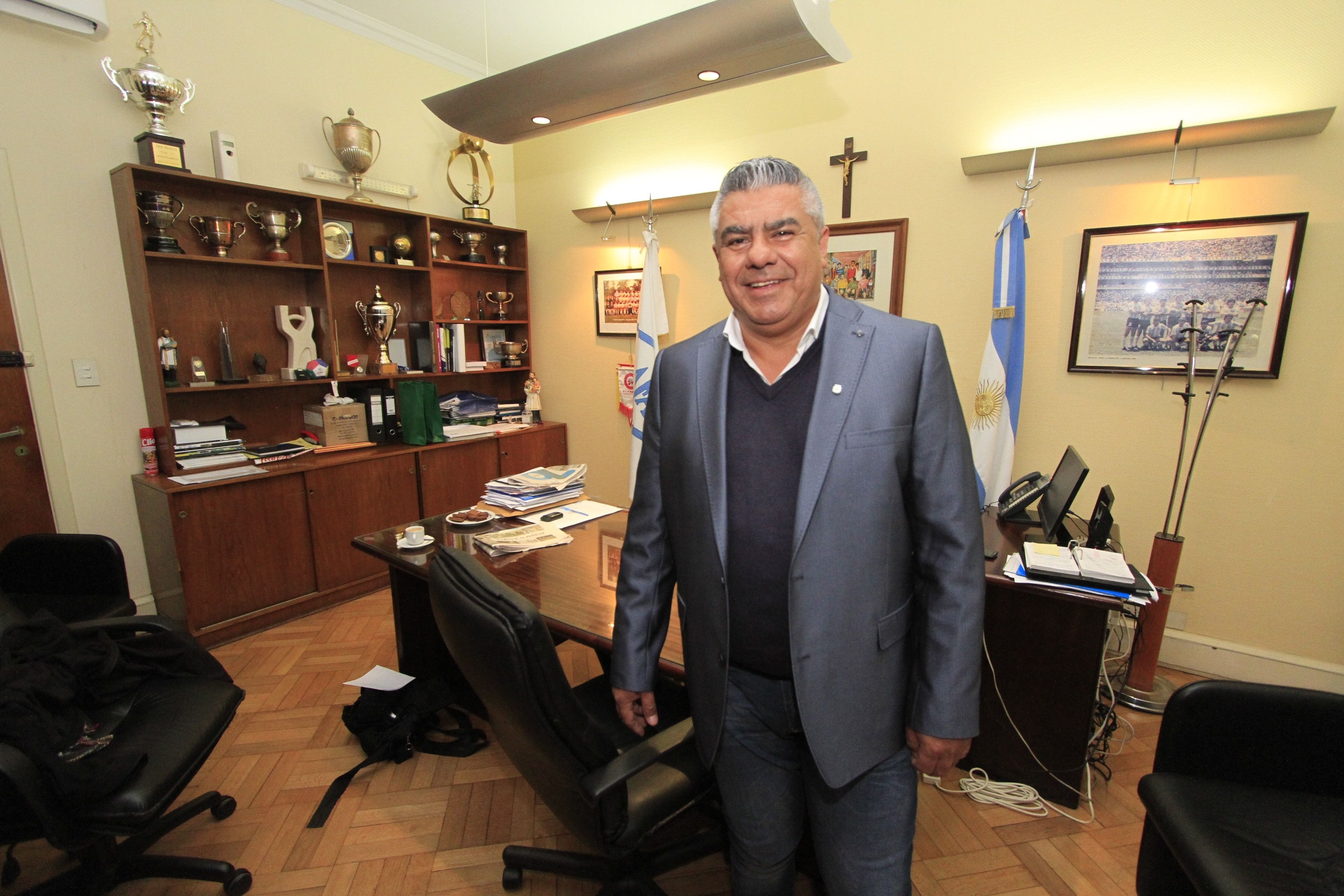 La oficina del jefe. Claudio Tapia tiene su despacho en el tercer piso de la AFA. Es el mismo sitio desde el cual Julio Grondona comandó al fútbol argentino por 35 años. Es un lugar no muy grande y más bien alejado de los lujos.