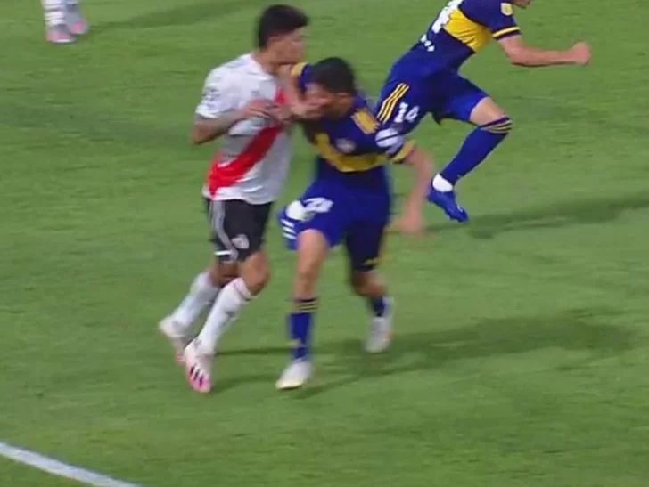 La imagen de la TV muestra claramente la intención del mediocampista de Boca de lastimar a su par colombiano.