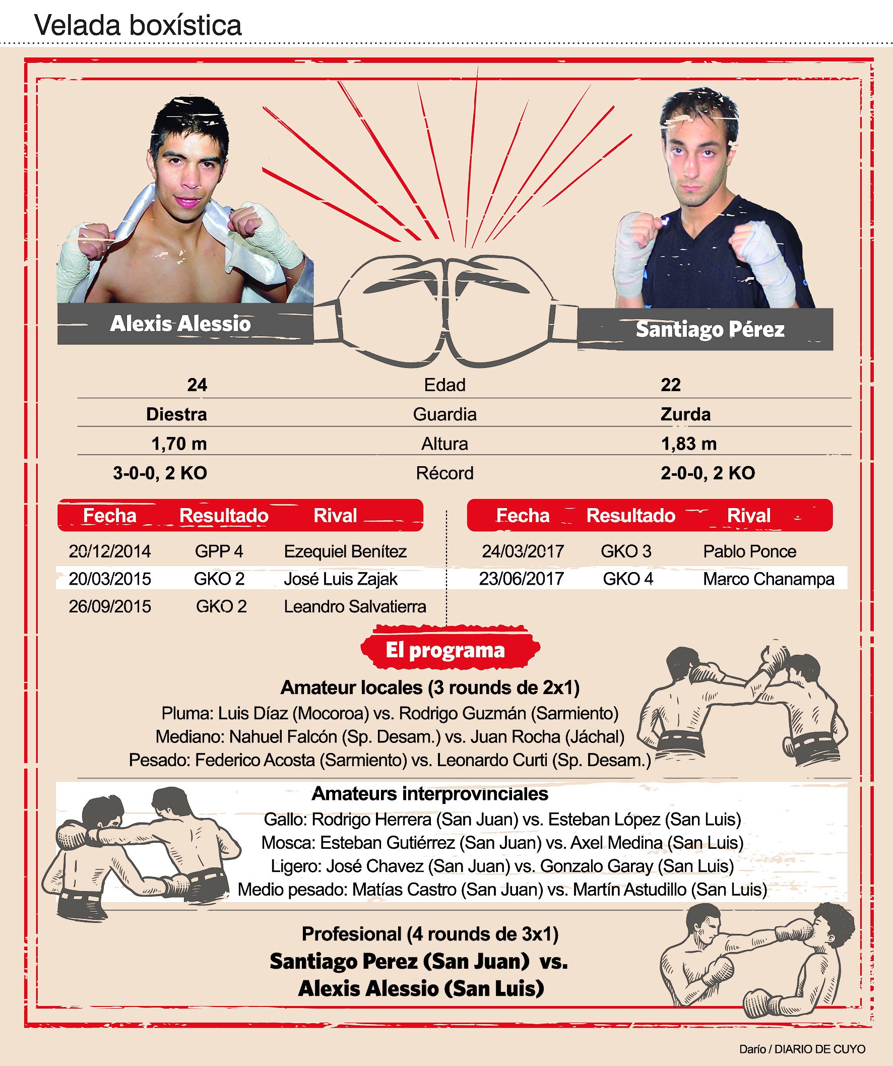 Los dos, en sus cortas y ascendente campañas, han demostrado tener cloroformo en sus puños. Es cierto que en los primeros combates siempre se trata de "cuidar" a la figurita local; pero no deja de ser verdad que, para definir antes del límite cuando las peleas son a 4 asaltos, hay que pegar duro, primero, y ser muy efectivo en los lanzamientos, después.