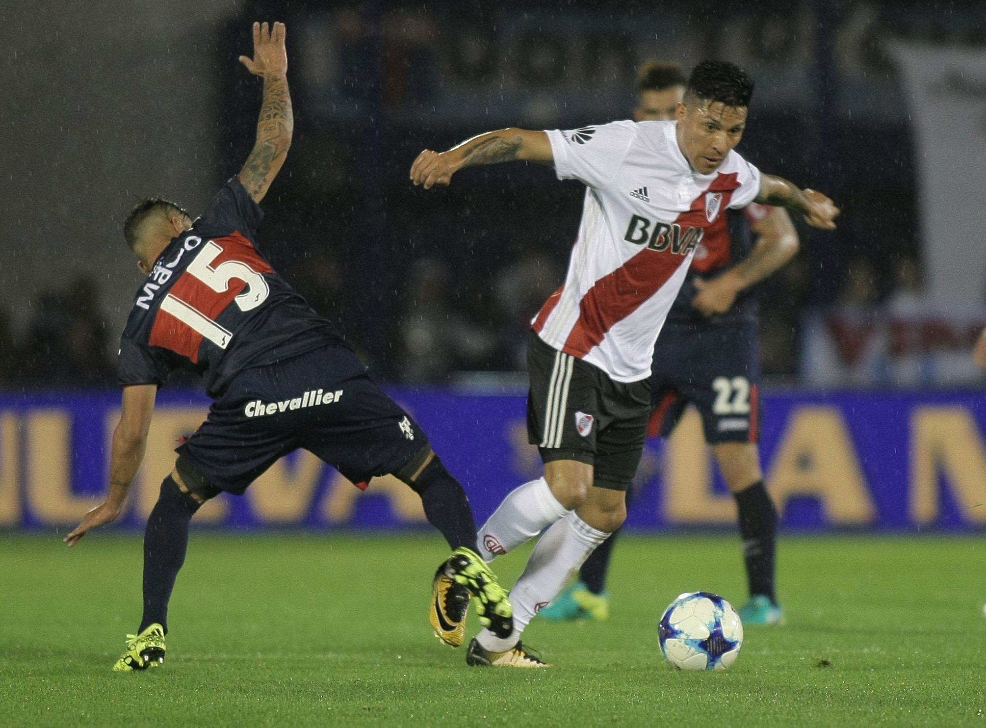 En el inicio de la etapa complementaria, River llegó con remates de Nicolás De la Cruz, Scocco y Carlos Auzqui, todos desviados. El entrenador Marcelo Gallardo dispuso el ingreso de Ariel Rojas para que manejara la pelota junto a Enzo Pérez y para que Gonzalo "Pity" Martínez quedara como delantero junto a Scocco.