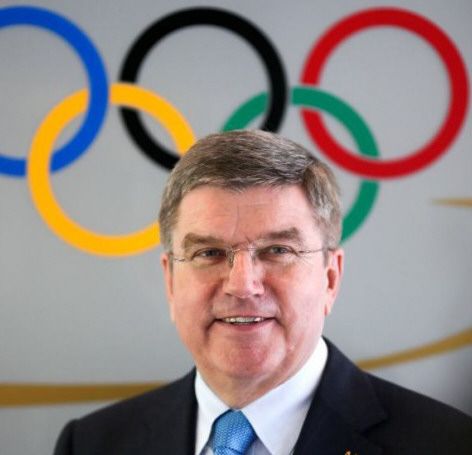 Thomas Bach, presidente del COI, hizo el último tramo de la llama.