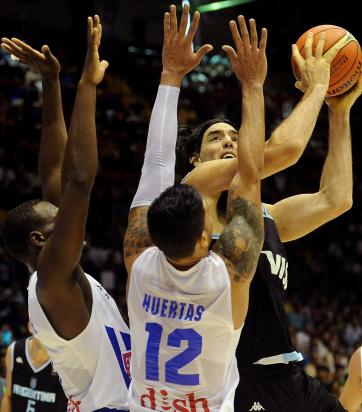 El primer tiempo de la Argentina resultó casi perfecto. Defensivamente neutralizó a Puerto Rico quitándole la posibilidad de salir rápido en ataque. La tarea se completó en ataque con Nocioni y Walter Herrmann sumamente efectivos cada vez que tuvieron la pelota en la mano. El ‘Chapu‘ consiguió 10 puntos en el primer cuarto, y Herrmann lo complementó con 9. Puerto Rico renació cuando José Barea ingresó a la cancha, y Renaldo Balkman dispuso de espacio para correr y volcar el balón. El seleccionado centroamericano llegó a ponerse 5 puntos abajo (36-31), y amenazó. Sin embargo en ese momento apareció Selem Safar, quien con una certera puntería (4/6 en los primeros 20 minutos), le permitió a la Argentina volver a tomar una distancia tranquilizadora. En la primera mitad del tercer cuarto, la Argentina se aseguró la victoria liderado por Scola. Puerto Rico se quedó sin nada. Barea, quien aparecería sobre el final del encuentro con el resultado liquidado, y Balkman perdieron peso específico, Arroyo siguió sin pesar en el armado y el goleó. Así se les hizo imposible retornar al juego. Cuando al tercer cuarto le quedaban apenas 3’ para finalizar, la Argentina se ponía 65-46 en el marcador. El partido estaba liquidado. Los últimos 10 minutos sirvieron para ampliar la ventaja.