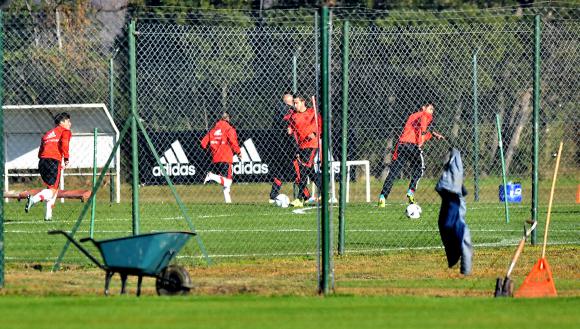 En cuanto a los delanteros, el DT trabaja mucho para que sepan jugar en espacios reducidos, a un toque y de espaldas. “Uno tiene que meterse entre los centrales y el otro moverse en la medialuna, no los quiere por afuera”, explicó.