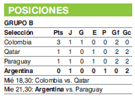 Este empate deja como único líder del Grupo B a la Selección Colombia, que anteayer venció 2-0 a Argentina, que es última de esta zona.