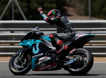 El francés Fabio Quartararo (foto), con Yamaha, se quedó ayer con la pole position para el Gran Premio de Andalucía, que por la segunda fecha del mundial de especialidad, se disputará hoy en el autódromo de Jerez de la Frontera, España. Quartararo, con la Yamaha Satélite, marcó un tiempo de 1m. 37s.107/1000 y, al igual que el sábado pasado, doblegó al español Mavercik Viñales (Yamaha), quien se metió en la última vuelta al tope del clasificador, pero como se extralimitó de la pista en la curva 7, los comisarios deportivos le quitaron el registro. Por su parte, el séxtuple campeón mundial, Marc Marquéz (Honda) decidió no correr. El piloto español no soportó los dolores en su brazo, operado el martes pasado.