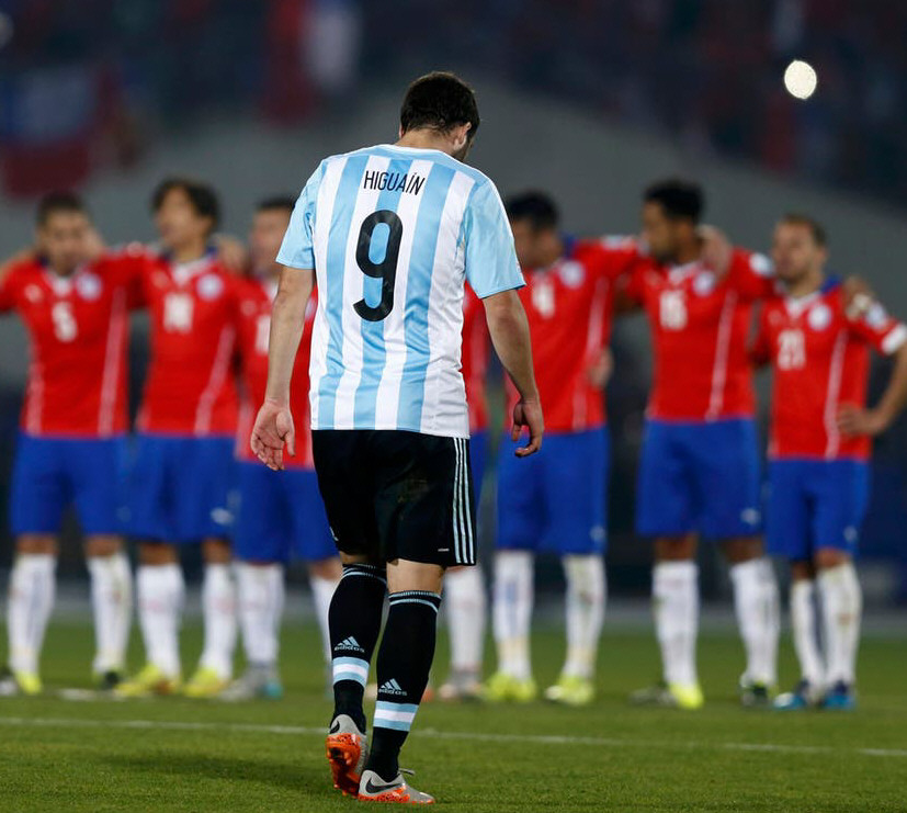 En Chile, la Selección dirigida por Gerardo Martino llegó después de perder la final del Mundial de Brasil ante Alemania. Igualó con el Chile de Sampaoli, pero en los penales ganó el trasandino por 4-1 tras los fallos de Higuaín y Banega.