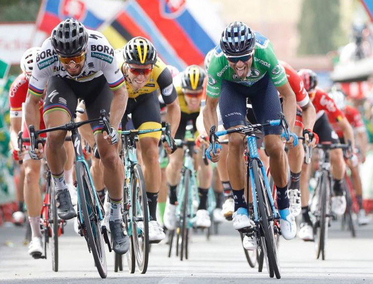 El murciano Alejandro Valverde (Movistar Team) logró ayer su segundo triunfo de etapa en La Vuelta al imponerse al campeón del mundo Peter Sagan (Bora-hansgrohe) en un sprint agónico en el final de la octava etapa, la tercera más larga de esta edición con 195,1 kilómetros entre Linares y el Parque Minero de Almadén. El ganador de La Vuelta 2009, que marcha segundo en la clasificación general, descontó 10 segundos más al lider Rudy Molard en la que fue la etapa previa a la alta montaña.