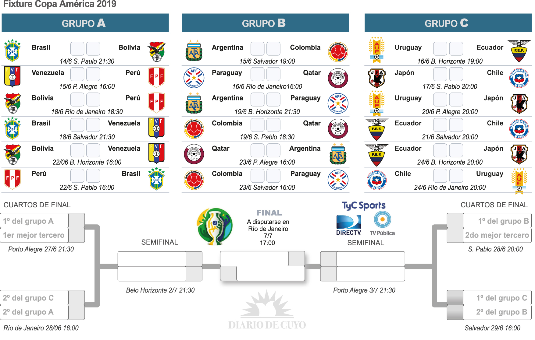 El grupo A lo completan Perú y Venezuela (se medirán el sábado a partir de las 16 hora argentina) y con el partido entre Brasil y Bolivia se estrenará también el VAR (asistencia de video para el árbitro), presente por primera vez en la historia de la Copa América, después de los que se organizan en el marco de los Juegos Olímpicos el torneo de selecciones más antiguo del mundo.