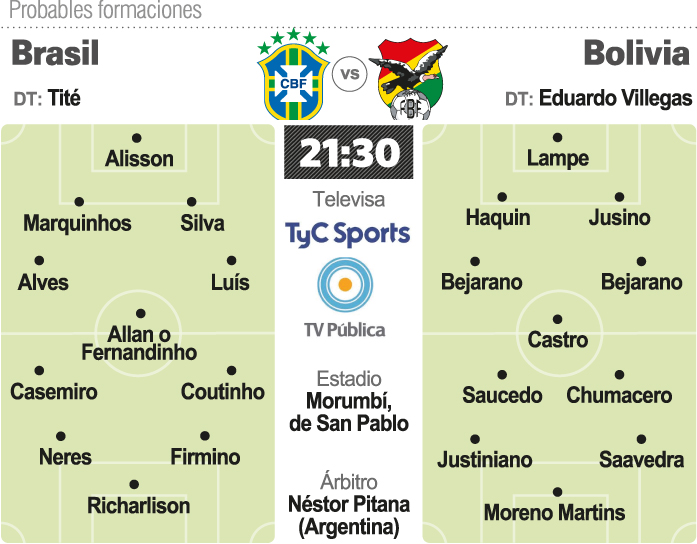 La "canarinha" suma ocho títulos continentales, el último en 2007, y ahora apelará a nombres como los de Phillipe Coutinho, Fernandinho, Casemiro, Dani Alves, Arthur (que está golpeado y al que el entrenador espera para el segundo cotejo) y Firmino para sumar su novena estrella sudamericana.